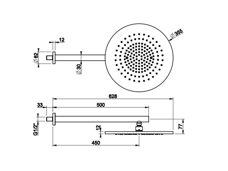 Верхний душ, Gessi, Shower316, тип установки-настенный, ширина, мм-355, глубина, мм-355, высота, мм-77, форма-круглая, держатель-есть, размер держателя-500, цвет-Black Metal Brushed PVD, на 1/2” с защитой от известкового налёта Верхний душ, Gessi, Shower316, шгв 355*355*77, цвет -Black Metal Brushed PVD