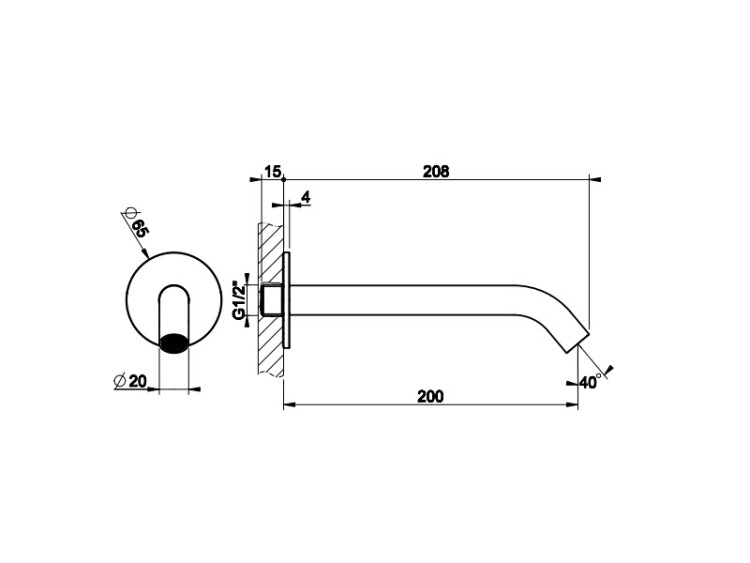 Излив, Gessi, тип установки-настенный, вынос излива, мм-200, стандарт подводки-1/2", цвет-Steel Brushed Излив, Gessi, цвет-Steel Brushed