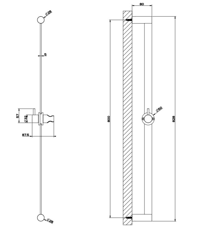 Штанга для душа, Gessi, Shower316, длина штанги, мм-800, держатель ручного душа-есть, цвет-Black Metal Brushed PVD Штанга для душа, Gessi, Shower316, 800, цвет-Black Metal Brushed PVD