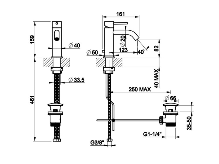 Смеситель для раковины, Gessi, Flessa, тип открывания воды-однорычажный, отверстия для монтажа-1, высота, мм-159, вынос излива, мм-123, донный клапан-есть, тип подводки-гибкая, стандарт подвода воды-3/8", цвет-Black Metal Brushed PVD Смеситель для раковины, Gessi, Flessa, цвет-Black Metal Brushed PVD
