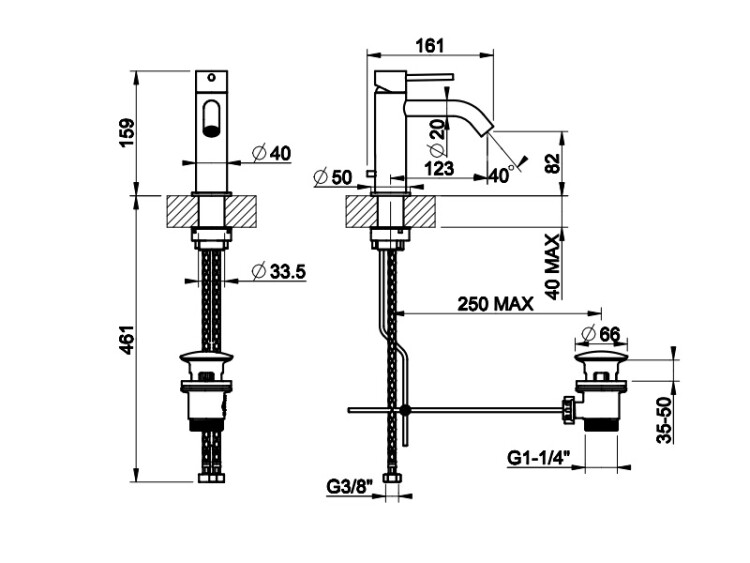 Смеситель для раковины, Gessi, Cesello, тип открывания воды-однорычажный, отверстия для монтажа-1, высота, мм-159, вынос излива, мм-123, донный клапан-есть, тип подводки-гибкая, стандарт подвода воды-3/8", цвет-Black Metal Brushed PVD Смеситель для раковины, Gessi, Cesello, цвет-Black Metal Brushed PVD