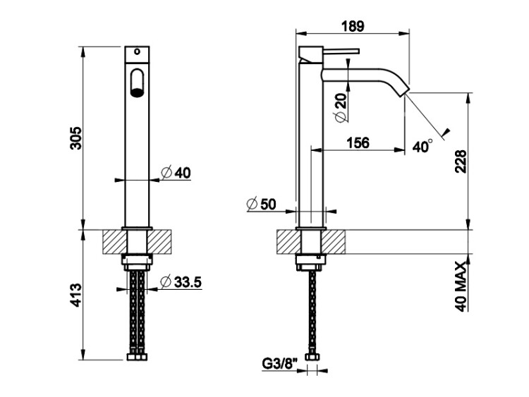 Смеситель для раковины, Gessi, Cesello, тип открывания воды-однорычажный, отверстия для монтажа-1, высота, мм-305, вынос излива, мм-156, тип излива-высокий, тип подводки-гибкая, стандарт подвода воды-3/8", цвет-Black Metal Brushed PVD Смеситель для раковины, Gessi, Cesello, цвет-Black Metal Brushed PVD