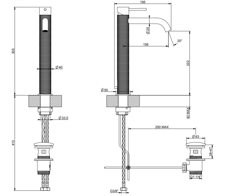 Смеситель для раковины, Gessi, 316 Cesello, тип открывания воды-однорычажный, монтаж-на раковину/столешницу, отверстия для монтажа-1, высота, мм-305, вынос излива, мм-156, тип излива-неподвижный, донный клапан-есть, тип подводки-гибкая, стандарт подвода воды-3/8", цвет-Black Metal Brushed PVD Смеситель для раковины, Gessi, 316 Cesello, цвет-Black Metal Brushed PVD