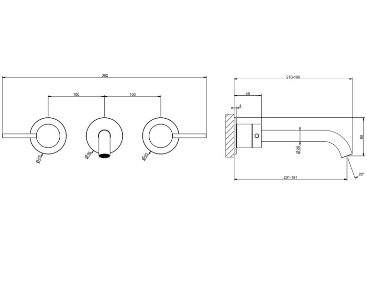 Смеситель для раковины, Gessi, 316 Flessa, тип открывания воды-вентильный, тип регулирования воды-керамическая кран-букса, монтаж-настенный встраиваемый, отверстия для монтажа-3, высота, мм-68, вынос излива, мм-190-210, тип излива-неподвижный, донный клапан-отсутствует, тип подводки-жесткая, стандарт подвода воды-1/2", внутренняя часть-необходимо заказать, цвет-Black Metal Brushed PVD Смеситель для раковины, Gessi, 316 Flessa, цвет-Black Metal Brushed PVD