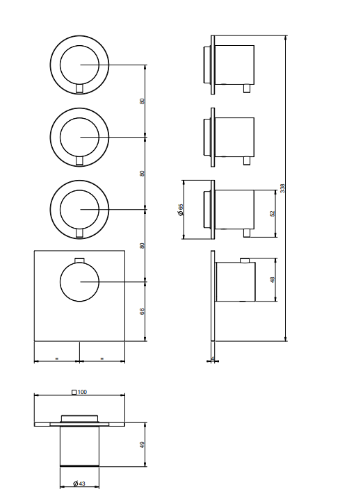 Смеситель для душа, Gessi, 316 Bath-Shower, тип открывания воды-вентильный, тип регулирования воды-термостатический картридж, монтаж-настенный встраиваемый, отверстия для монтажа-4, внутренняя часть-необходимо заказать, цвет-Steel Brushed, подключение на 3/4", с вертикальной/горизонтальной установкой, с 3-мя независимыми выходами Смеситель для душа, Gessi, 316 Bath-Shower, цвет-Steel Brushed
