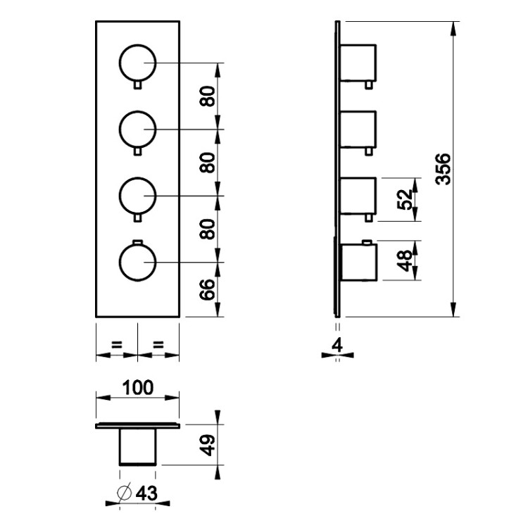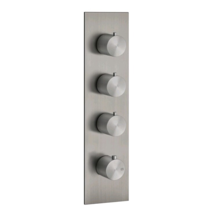 Смеситель для душа, Gessi, 316 Bath-Shower, на панели, на 3 потребителя, тип открывания воды-однорычажный, тип регулирования воды-термостатический картридж, монтаж-настенный встраиваемый, с вертикальной/горизонтальной установкой, отверстия для монтажа-4, внутренняя часть-необходимо заказать, цвет-Steel Brushed Смеситель для душа, Gessi, 316 Bath-Shower, на 3 потребителя, цвет-Steel Brushed