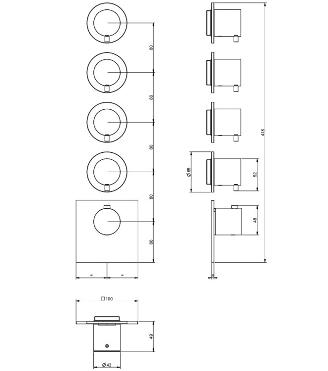 Смеситель для душа, Gessi, 316 Bath-Shower, на 4 потребителя, тип открывания воды-однорычажный, тип регулирования воды-термостатический картридж, монтаж-настенный встраиваемый, с вертикальной/горизонтальной установкой, отверстия для монтажа-5, внутренняя часть-необходимо заказать, цвет-Black Metal Brushed PVD Смеситель для душа, Gessi, 316 Bath-Shower, на 4 потребителя, цвет-Black Metal Brushed PVD