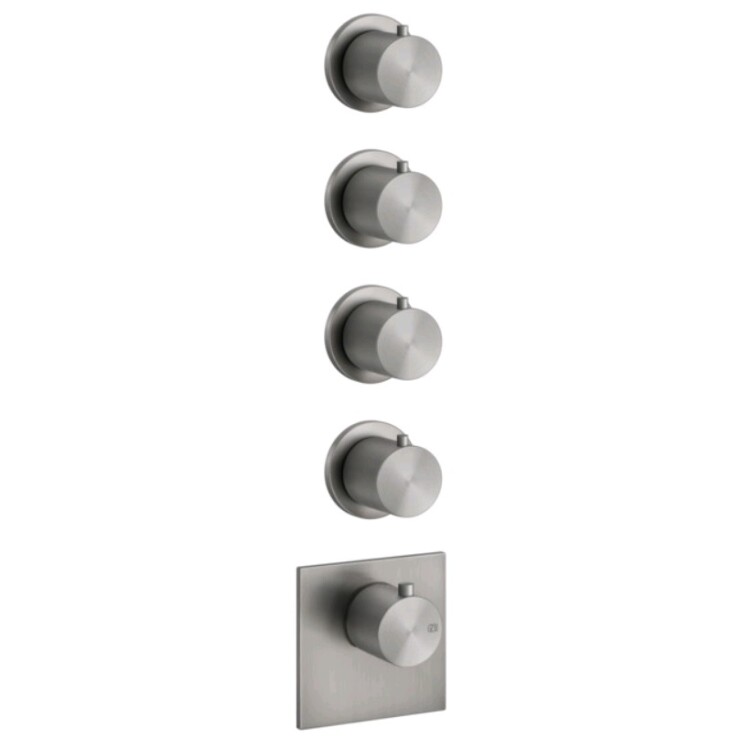 Смеситель для душа, Gessi, 316 Bath-Shower, на 4 потребителя, тип открывания воды-однорычажный, тип регулирования воды-термостатический картридж, монтаж-настенный встраиваемый, с вертикальной/горизонтальной установкой, отверстия для монтажа-5, внутренняя часть-необходимо заказать, цвет-Steel Brushed Смеситель для душа, Gessi, 316 Bath-Shower, на 4 потребителя, цвет-Steel Brushed