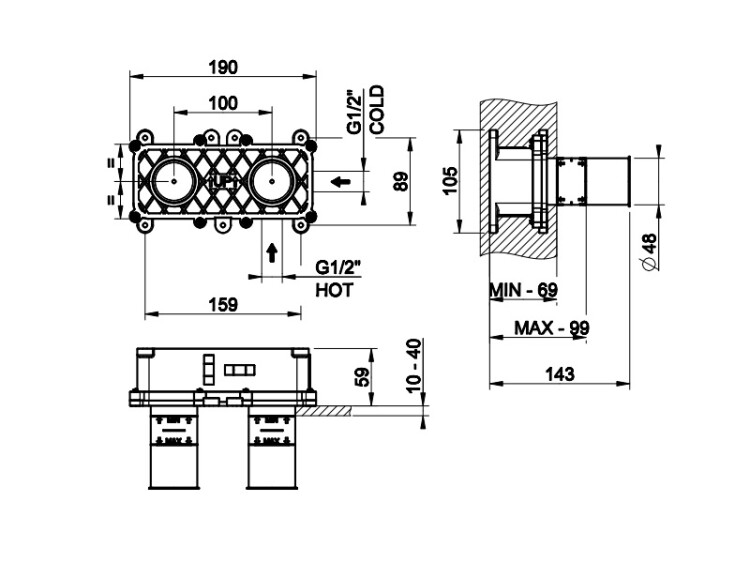 Внутрення часть, Gessi, Inciso, назначение-для смесителя с изливом, стандарт подвода воды-1/2", цвет-Steel Brushed Внутрення часть, Gessi, Inciso, для смесителя с изливом, Steel Brushed