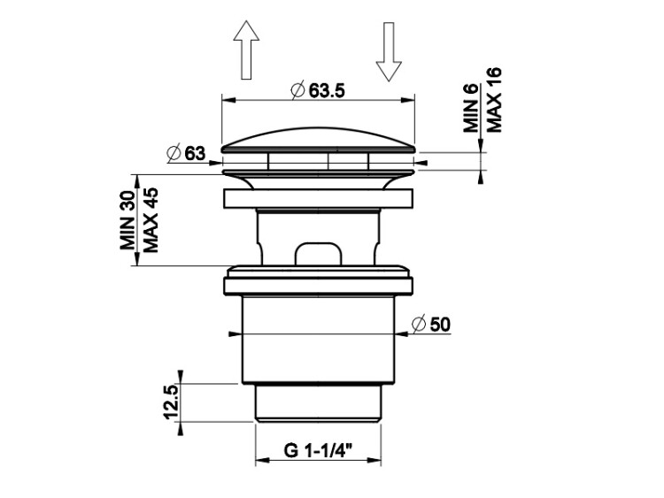 Донный клапан, Gessi, Technical Accessories, 1 1/4, диаметр, мм-63.5, для раковины, тип-автоматический “Stop&Go”, форма крышки-круглая, с переливом, цвет-Finox Brushed Nickel Донный клапан, Gessi, Technical Accessories, 1 1/4, диаметр, мм-63.5, для раковины, цвет-Finox Brushed Nickel