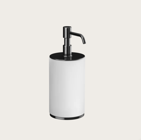 Дозатор для жидкого мыла, Gessi, Anello, механический (нажимной), ширина, мм-75, глубина, мм-97, высота, мм-199, тип установки-настольный (свободностоящий), цвет колбы-белый, цвет дозатора-Black Metal PVD Дозатор для жидкого мыла, Gessi, Anello, шгв 75*97*199, цвет дозатора-Black Metal PVD