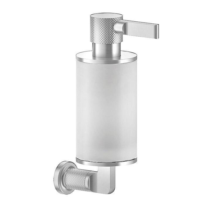 Дозатор для жидкого мыла, Gessi, Inciso, с держателем, механический (нажимной), ширина, мм-75, глубина, мм-147, высота, мм-240, тип установки-настенный, материал колбы-композит неолит, цвет колбы-белый, цвет дозатора-хром Дозатор для жидкого мыла, Gessi, Inciso, шгв 75*147*240, цвет дозатора-хром/белый