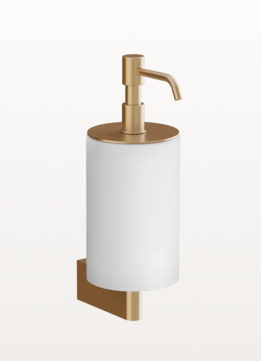 Дозатор для жидкого мыла, Gessi, Origini, механический (нажимной), ширина, мм-75, глубина, мм-127, высота, мм-229, тип установки-настенный, цвет колбы-белый, цвет дозатора-Warm Bronze Brushed PVD Дозатор для жидкого мыла, Gessi, Origini, шгв 75*127*229, цвет дозатора-Warm Bronze Brushed PVD