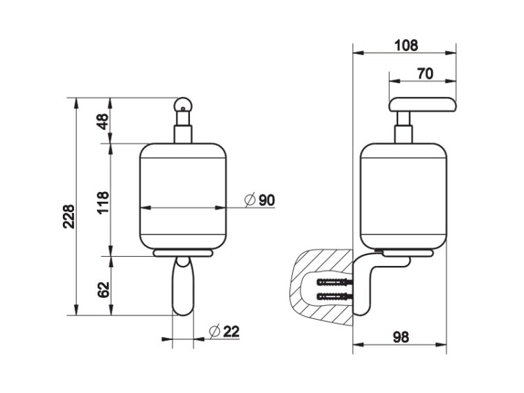 Дозатор для жидкого мыла, Gessi, Goссia, с держателем, ширина, мм-90, глубина, мм-108, высота, мм-228, тип установки-настенный, материал колбы-керамика белая, цвет-хром Дозатор для жидкого мыла, Gessi, Goссia, шгв 90*108*228, цвет-хром