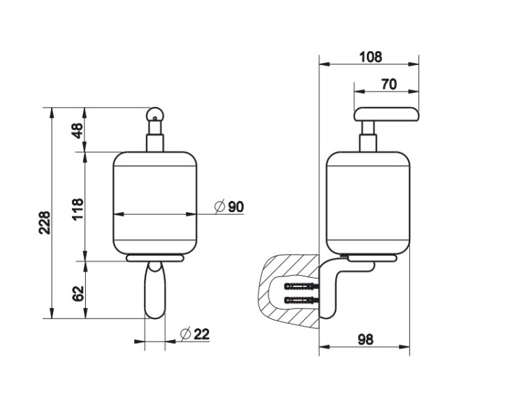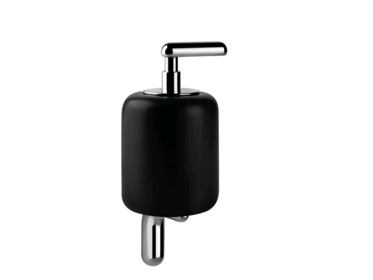 Дозатор для жидкого мыла, Gessi, Goссia, с держателем, ширина, мм-90, глубина, мм-108, высота, мм-228, тип установки-настенный, материал колбы-керамика черная, цвет-хром Дозатор для жидкого мыла, Gessi, Goссia, шгв 90*108*228, цвет-хром