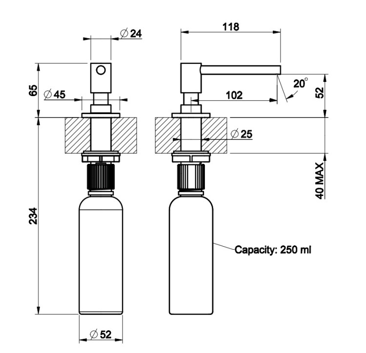 Дозатор для жидкого мыла, Gessi, механический (нажимной), ширина, мм-45, глубина, мм-118, высота, мм-65, ёмкость(мл)-250, тип установки-встраиваемый, цвет дозатора-Black Metal Brushed PVD Дозатор для жидкого мыла, Gessi, шгв 45*118*65, цвет дозатора-Black Metal Brushed PVD