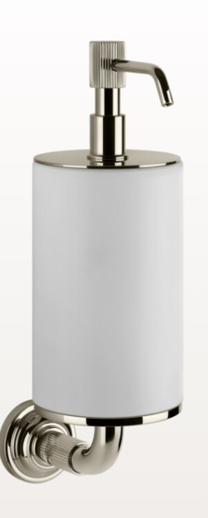 Дозатор для жидкого мыла, Gessi, VENTI20, механический (нажимной), ширина, мм-75, глубина, мм-136, высота, мм-254, тип установки-настенный, цвет колбы-белый, цвет дозатора-Nickel PVD Дозатор для жидкого мыла, Gessi, VENTI20, шгв 75*136*254, цвет-белый/Nickel PVD