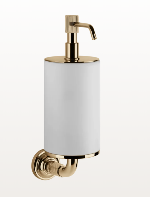 Дозатор для жидкого мыла, Gessi, VENTI20, механический (нажимной), ширина, мм-75, глубина, мм-136, высота, мм-254, тип установки-настенный, цвет колбы-белый, цвет дозатора-Warm Bronze Brushed PVD Дозатор для жидкого мыла, Gessi, VENTI20, шгв 75*136*254, цвет дозатора/колбы-Warm Bronze Brushed PVD/белый