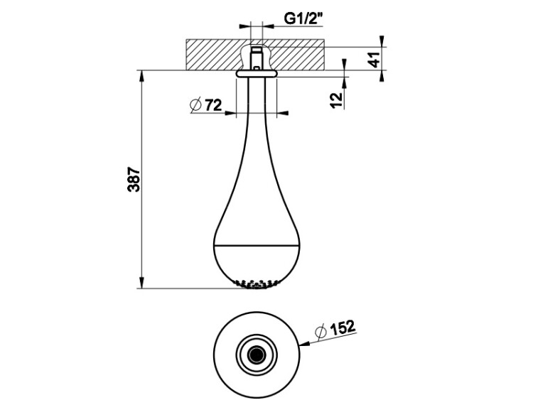 Верхний душ, Gessi, Goссia, тип установки-потолочный, ширина, мм-152, глубина, мм-152, высота, мм-387, форма-круглая, цвет-Black XL Верхний душ, Gessi, Goссia, шгв 152*152*387, цвет -Black XL