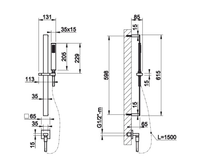 | Размер верхнего душа, мм | 35*205 |