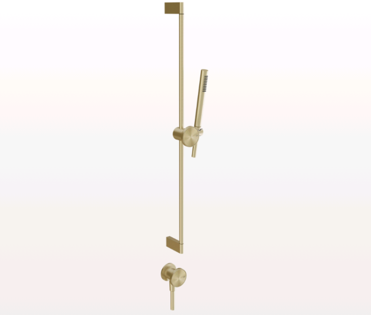 Душевой гарнитур, Gessi, Origini, размер штанги, мм-835, размер шланга, мм-1500, ручной душ-есть, форма лейки-цилиндрическая, шланговое подсоединение-есть, в комплект входит отделочная вставка, цвет-Brushed Brass PVD Душевой гарнитур, Gessi, Origini, цвет-Brushed Brass PVD
