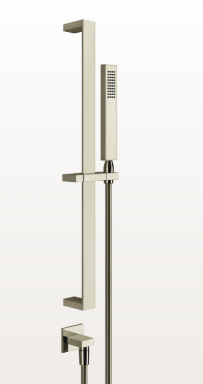 Душевой гарнитур, Gessi, Rettangolo shower, размер шланга, мм-1500, размер душевого диска, мм-35*205, форма лейки-прямоугольная, в комплекте-держатель ручного душа, вывод воды из стены, цвет-Nickel PVD Душевой гарнитур, Gessi, Rettangolo shower, 35*205, цвет-Nickel PVD