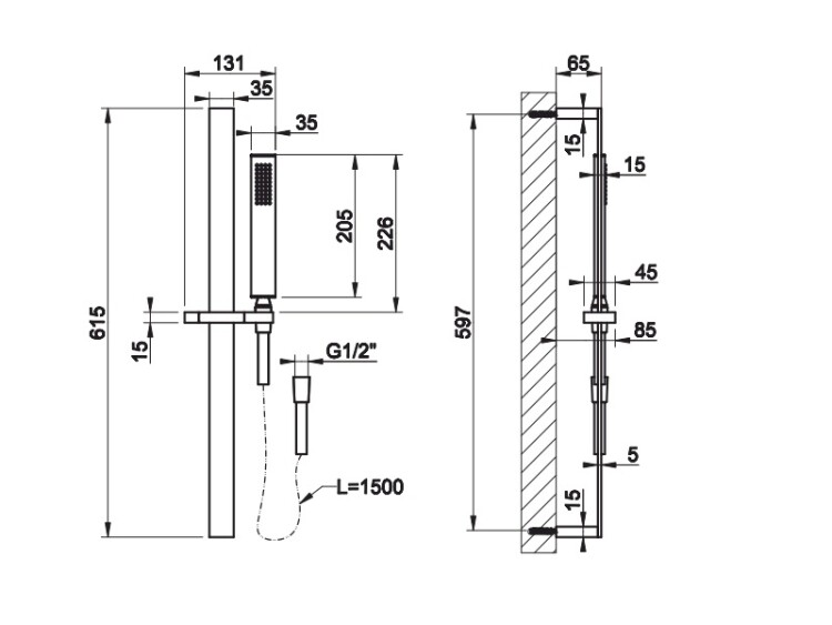 Душевой гарнитур, Gessi, Rettangolo shower, размер штанги, мм-615, размер шланга, мм-1500, ручного душ-прямоугольный, ширина,мм-35, длинна,мм-205, цвет-Black XL Душевой гарнитур, Gessi, Rettangoloshower, цвет -Black XL