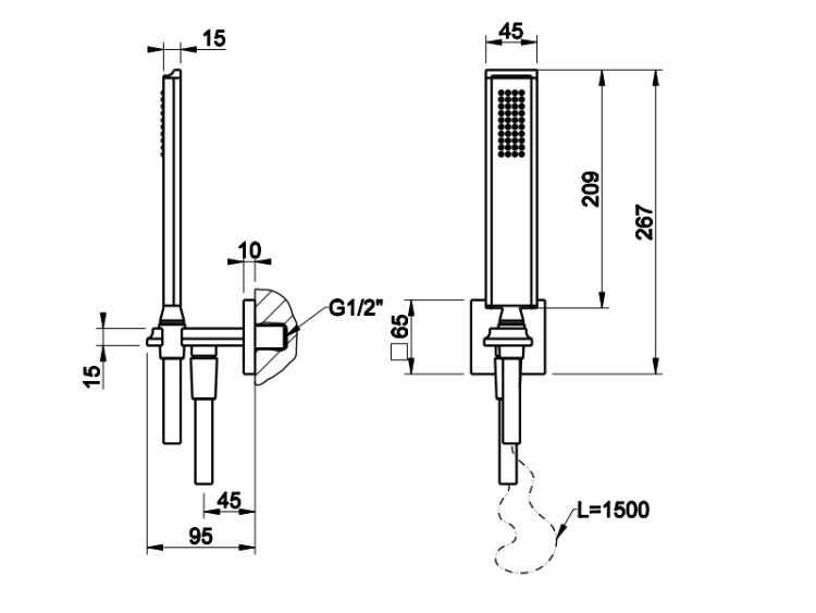 Душевой набор, Gessi, Eleganza, размер душевого диска, шгв,мм-45*15*209, форма лейки-прямоугольная, держатель для душа-есть, шланг-есть, длина шланга, мм-1500, шланговое подключение-есть, цвет-хром Душевой набор, Gessi, Eleganza, цвет-хром