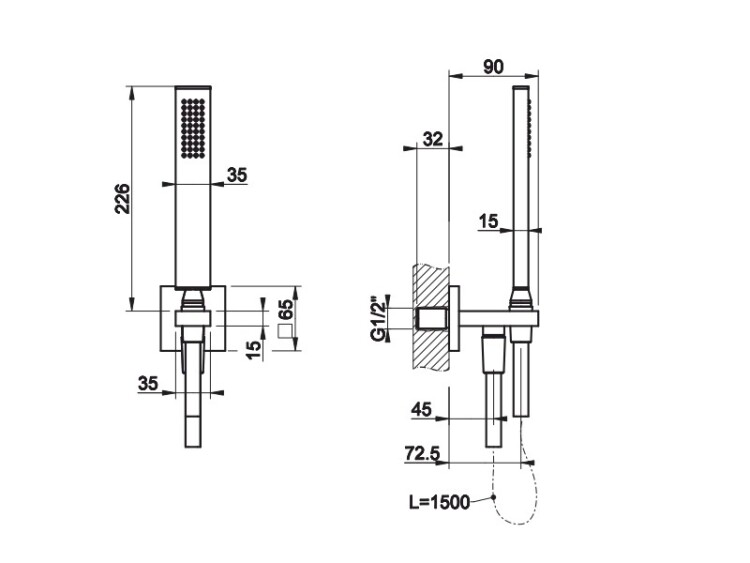 Душевой набор, Gessi, Rettangolo shower, размер душевого диска, шгв,мм-35*15*226, форма лейки-прямоугольная, держатель для душа-есть, шланг-есть, длина шланга, мм-1500, шланговое подключение-есть, цвет-Black Metal PVD Душевой набор, Gessi, Rettangoloshower, цвет -Black Metal PVD