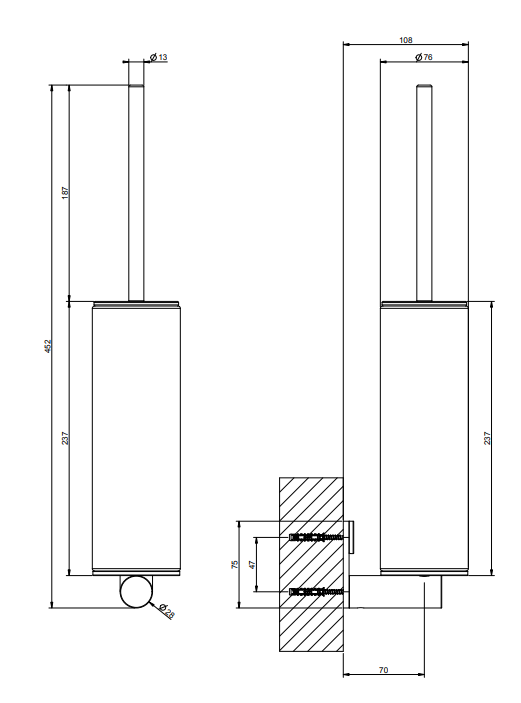 Ёршик, Gessi, 316, ширина, мм-75, глубина, мм-107.5, высота, мм-403, настенный, материал колбы-композит неолит белый, материал держателя-металл, цвет-Black XL Ёршик, Gessi, 316, шгв 75*107.5*403, цвет-Black XL/белый