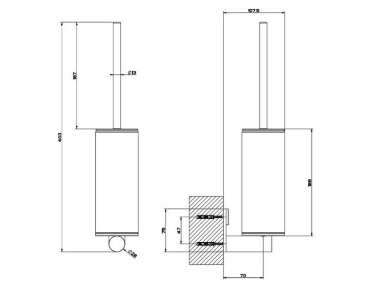 Ёршик, Gessi, 316, ширина, мм-75, глубина, мм-107.5, высота, мм-403, тип установки-настенный, материал держателя-металл, цвет-Copper Brushed PVD Ёршик, Gessi, 316, шгв 75*107.5*403, цвет-Copper Brushed PVD