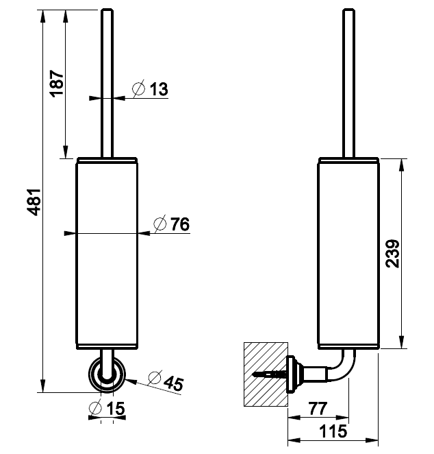 Ёршик, Gessi, VENTI20, ширина, мм-76, глубина, мм-115, высота, мм-481, настенный, материал держателя-металл, цвет колбы/держателя-белый/Warm Bronze PVD Ёршик, Gessi, VENTI20, шгв 76*115*481, цвет колбы/держателя-белый/Warm Bronze PVD