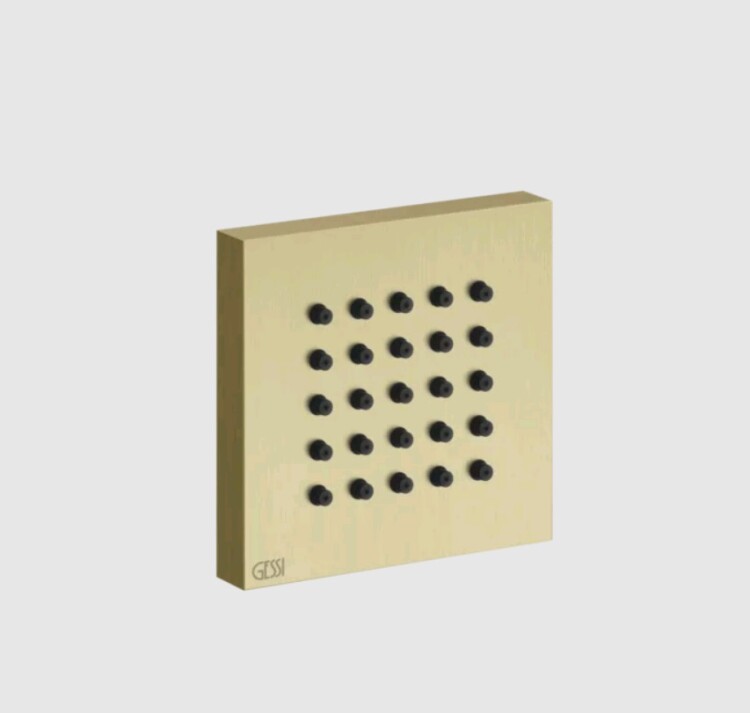 Форсунка, Gessi, Body Jets, боковая, форма-квадратная, ширина, мм-65, глубина, мм-11,5, высота, мм-65, цвет-Brushed Brass PVD Форсунка, Gessi, Body Jets, цвет-Brushed Brass PVD