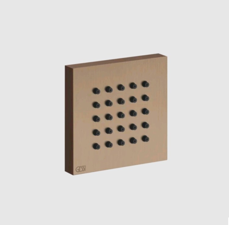 Форсунка, Gessi, Body Jets, боковая, форма-квадратная, ширина, мм-65, глубина, мм-11,5, высота, мм-65, цвет-Copper Brushed PVD Форсунка, Gessi, Body Jets, цвет-Copper Brushed PVD