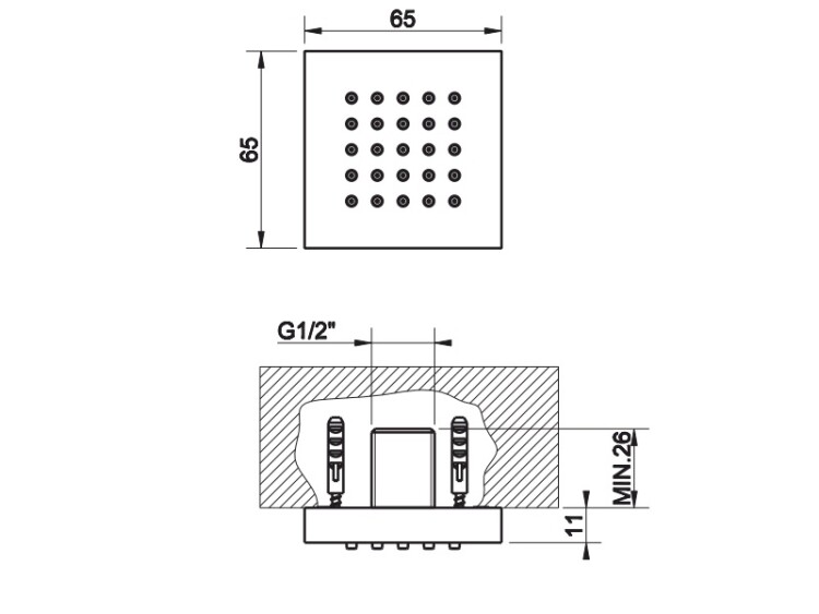 Форсунка, Gessi, Body Jets, боковая, 1/2", форма-квадратная, цвет-Copper PVD Форсунка, Gessi, Body Jets, цвет-Copper PVD