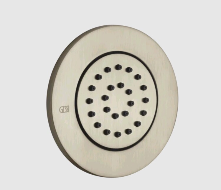 Форсунка, Gessi, Body Jets, регулируемая, угол поворота-13, форма-круглая, диаметр, мм-98, внутреннюю часть-необходимо заказать, цвет-Finox Brushed Nickel Форсунка, Gessi, Body Jets, цвет-Finox Brushed Nickel