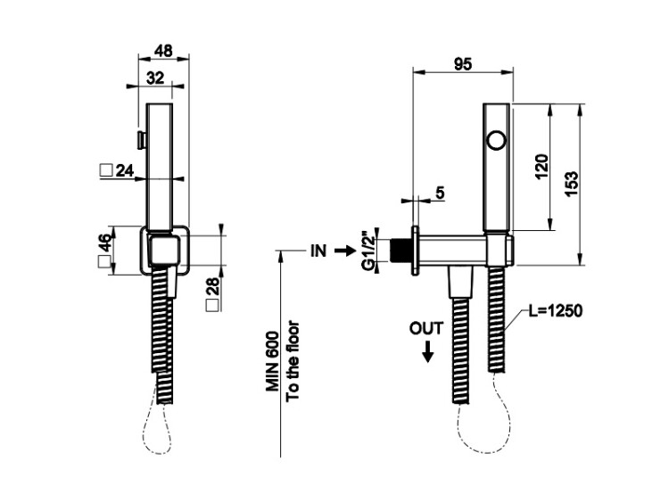 Гидроёршик, Gessi, Rettangolo shower, шланг-есть, длина шланга, мм-1250, держатель-есть, цвет-Finox, настенный на 1/2” Гидроёршик, Gessi, Rettangolo shower, цвет-Finox
