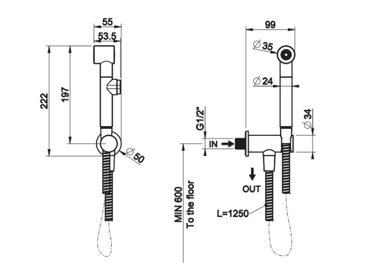 Гигиенический душ, Gessi, шланг-есть, длина шланга, мм-1250, держатель-есть, цвет-Finox, на 1/2” Гигиенический душ, Gessi, цвет -Finox