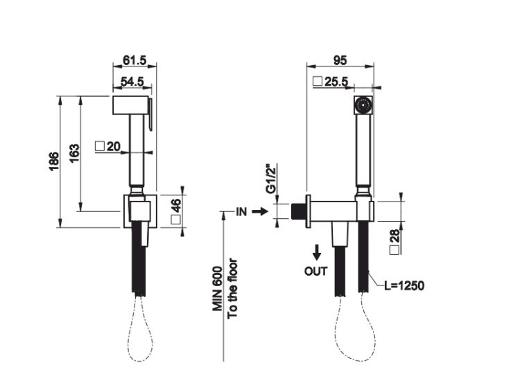 Гигиенический душ, Gessi, Rettangolo, шланг-есть, длина шланга, мм-1250, держатель-есть, цвет-хром Гигиенический душ, Gessi, Rettangolo, цвет -хром
