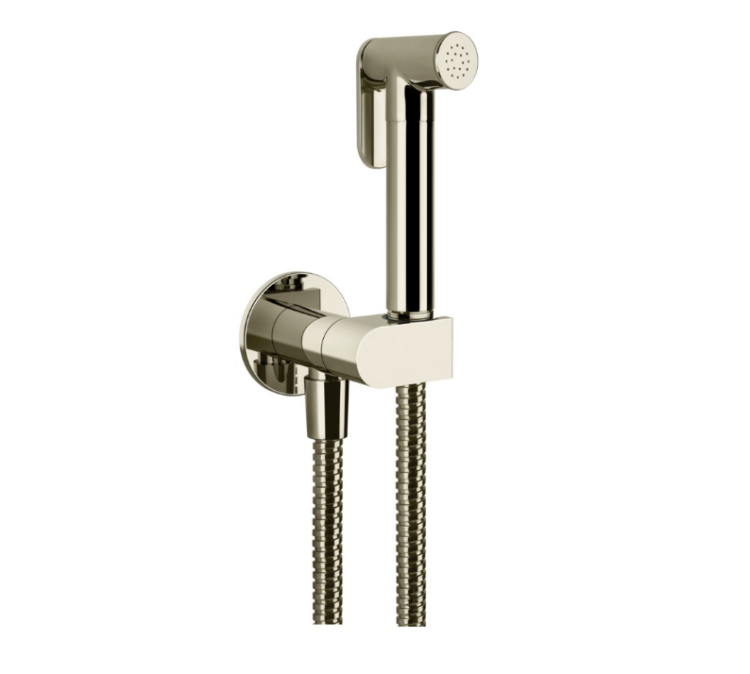 Гигиенический душ, Gessi, с предохранительным клапаном, шланг-есть, длина шланга, мм-1250, держатель-есть, цвет-Nickel PVD Гигиенический душ, Gessi, цвет-Nickel PVD