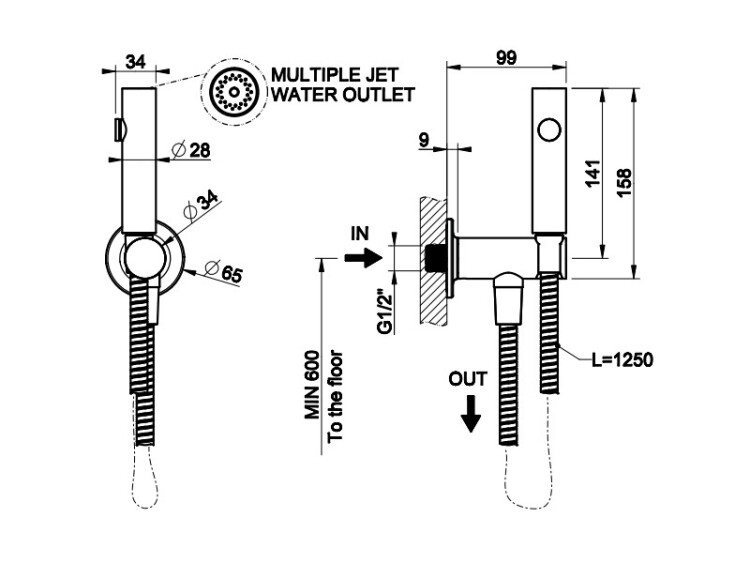 Гигиенический душ, Gessi, Inciso, шланг-есть, длина шланга, мм-1250, держатель-есть, цвет-Finox, на 1/2" Гигиенический душ, Gessi, Inciso, цвет -Finox