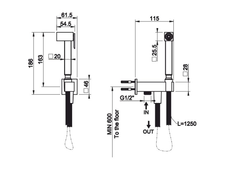 Гигиенический душ, Gessi, Rettangolo, шланг-есть, длина шланга, мм-1250, держатель-есть, цвет-хром, на 1/2”, вывод воды на 1/2” Гигиенический душ, Gessi, Rettangolo, цвет -хром