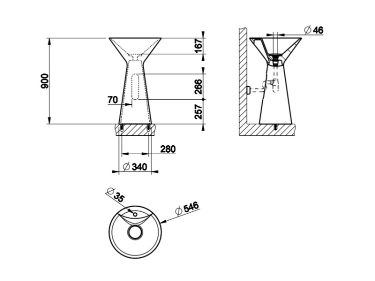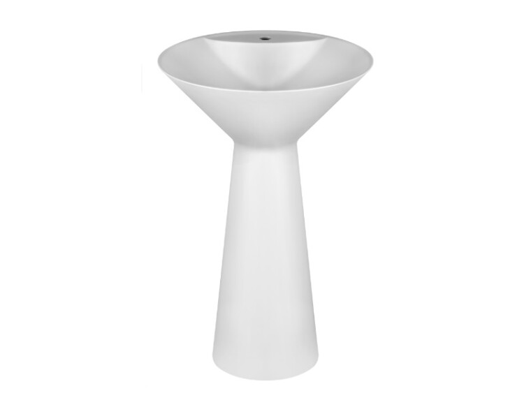 Раковина, Gessi, Cono, ширина, мм-546, глубина, мм-546, высота, мм-900, тип установки-напольный, отверстия для смесителя-1, материал-Cristalplant, слив в стену, в комплекте-сифон, донный клапан-решетчатый, цвет-матовый белый Раковина, Gessi, Cono, шгв 546*546*900, отверстия для смесителя-1, цвет -матовый белый
