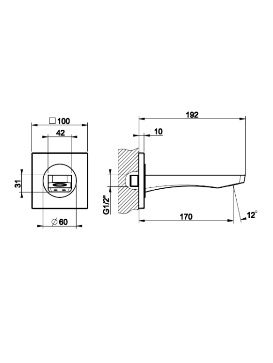 Излив, Gessi, Rilievo, тип установки-настенный, вынос излива, мм-170, стандарт подводки-1/2", цвет-хром Излив, Gessi, Rilievo, цвет-хром
