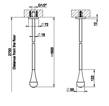 Излив, Gessi, Goссia, настенный встраиваемый, вынос излива, мм-1600, стандарт подводки-1/2", цвет-Copper Brushed GHRC Излив, Gessi, Goссia, цвет-Copper Brushed GHRC