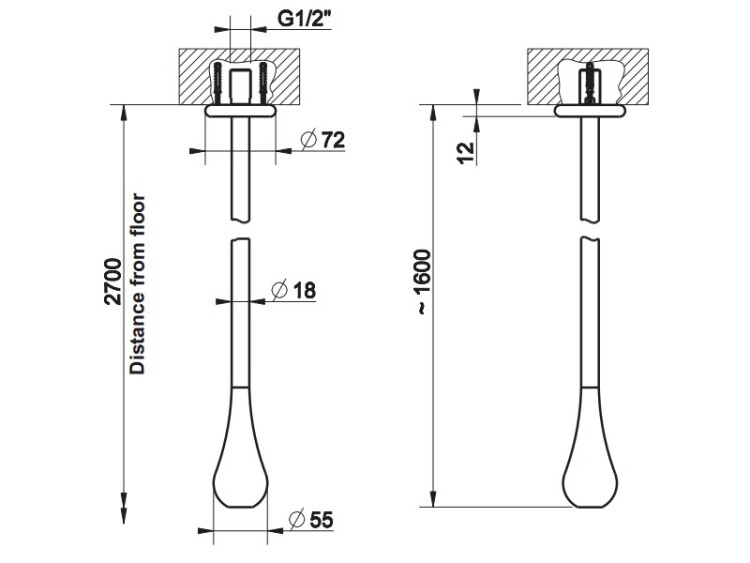 Излив, Gessi, Goссia, тип установки-потолочный, вынос излива, мм-1600, стандарт подводки-1/2", цвет-шлифованный хром Излив, Gessi, Goссia, цвет-шлифованный хром