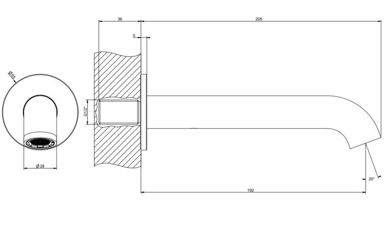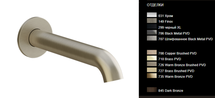 Излив, Gessi, Habito Bath-Shower, для ванны, настенный, вынос излива, мм-192, стандарт подводки-1/2", цвет-хром Излив, Gessi, Habito Bath-Shower, для ванны, цвет-хром