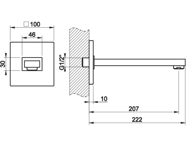 Излив, Gessi, Rettangolo, тип установки-настенный, вынос излива, мм-207, стандарт подводки-1/2", цвет-Black XL Излив, Gessi, Rettangolo, цвет-Black XL