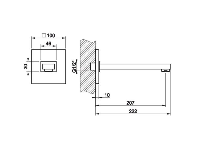 Излив, Gessi, Rettangolo, тип установки-настенный, вынос излива, мм-207, стандарт подводки-1/2", цвет-Finox Излив, Gessi, Rettangolo, цвет-Finox