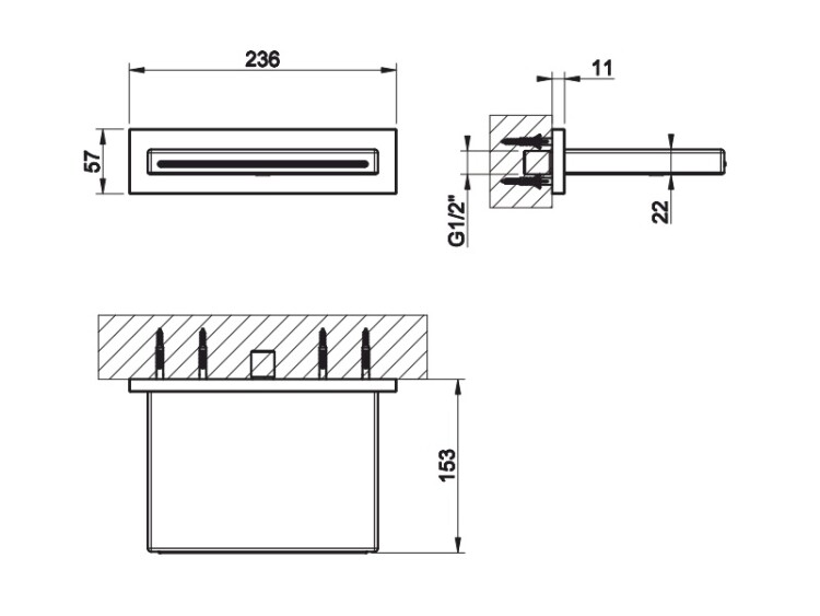 Излив, Gessi, Rettangolo, каскадный, тип установки-настенный, вынос излива, мм-153, стандарт подводки-1/2", цвет-Mirror Steel Излив, Gessi, Rettangolo, цвет-Mirror Steel